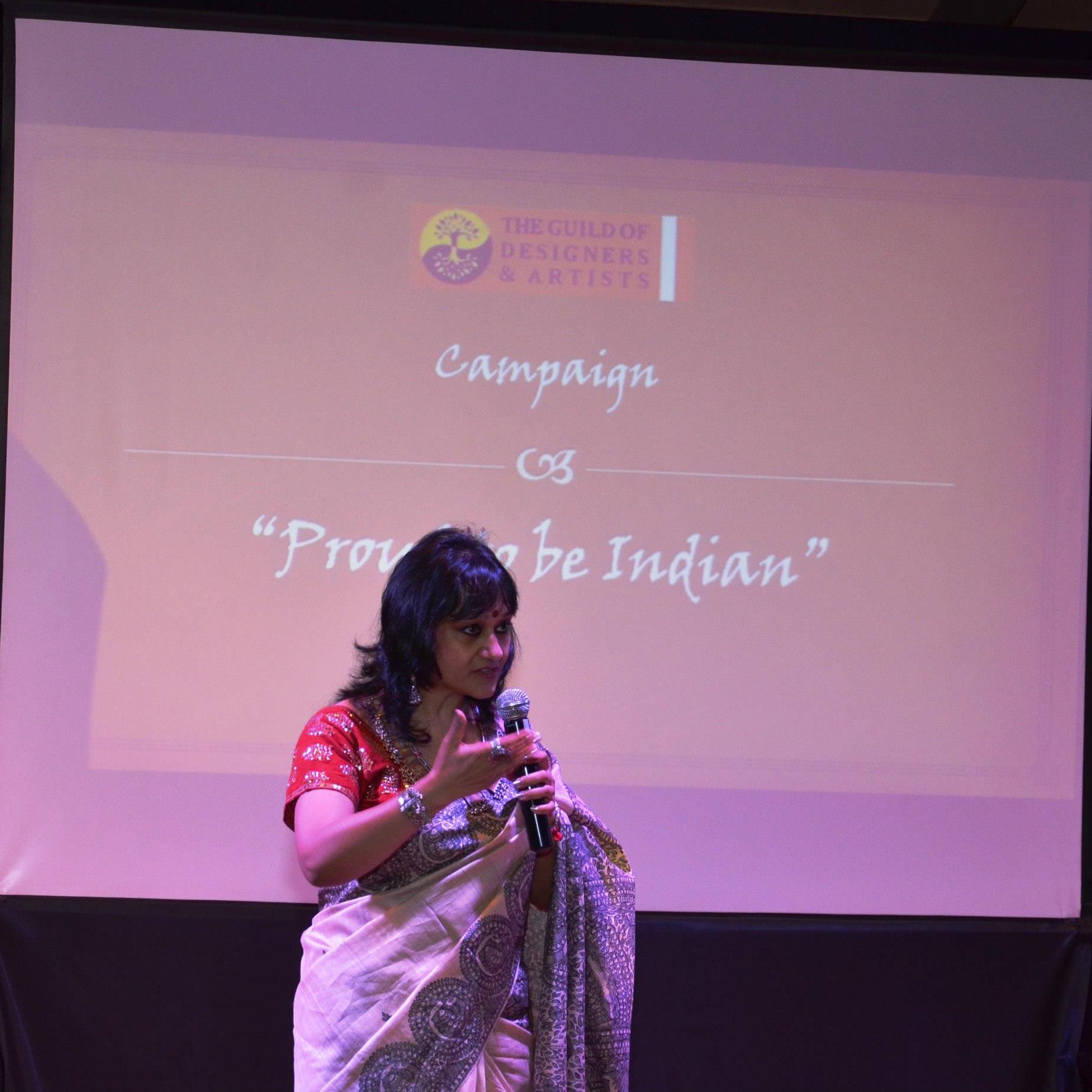 In continuation of the Campaign: “Proud to be Indian” – The Guild of Designers & Artists organised an event to discuss Madhubani Art form which is an ancient style of Indian painting, practiced in the Mithila region of Bihar, India. This Craft is a dying craft & our endeavor is to keep the craft alive by creating work opportunities for the craftsmen at the grass root level and financially empowering them. This is possible when we as Designers are able to guide them with designs that are contemporary and therefore marketable without losing the”soul” of the craft .It is important for us to promote it by showcasing this art at public spaces and also use them in our everyday life.